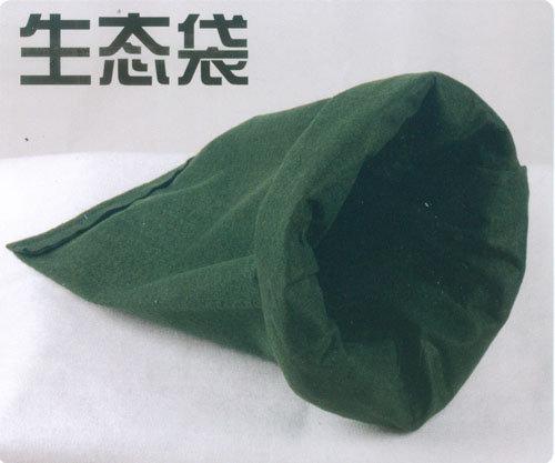 生态袋: 由聚丙烯(PP)为原材料制成的双面熨烫针刺无纺布加工而成的袋子。在充分考虑材料力学、水利学、生物学、植物学等诸多学科要求的前提下,